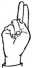 На ћирилици написано КОСТАДИН РАТАЈАЦ састоји се из 15 слова [?]. Исписано ћириличном једноручном азбуком за глувонеме: